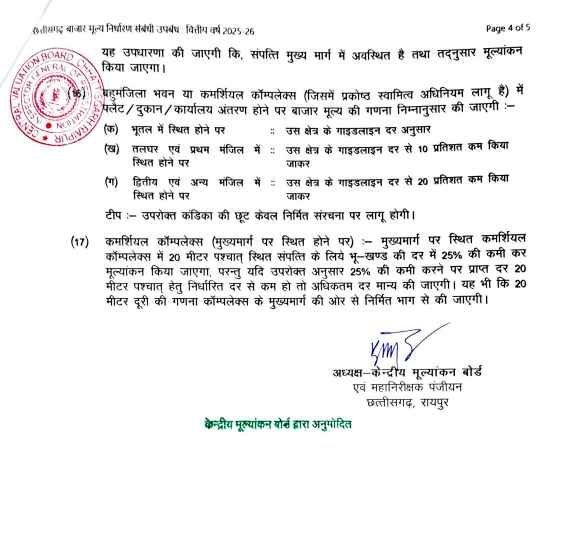 बहुमंजिला फ्लैट और दुकानों को बड़ी राहत… छत्तीसगढ़ में जमीन की नई गाइडलाइन दरें जारी, जानिए क्या-क्या बदलाव हुए…